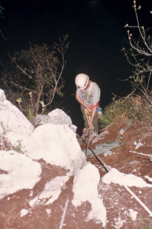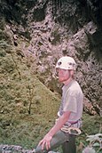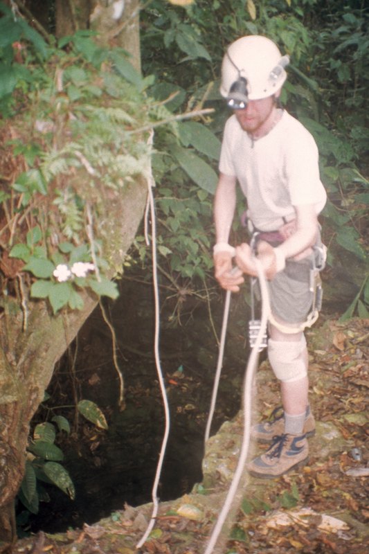 Carl about to rappel into the entrance pit of Sótano de Tlamaya.