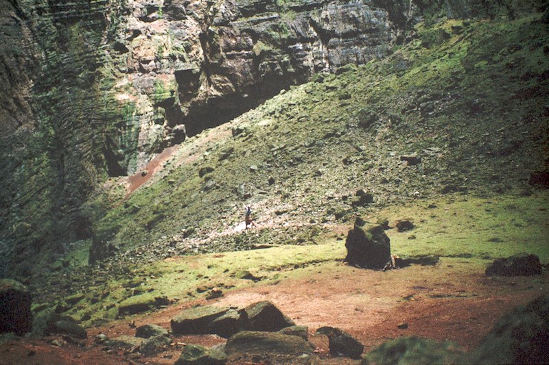 Looking down to the bottom of El Sótano during a rest in the climb.