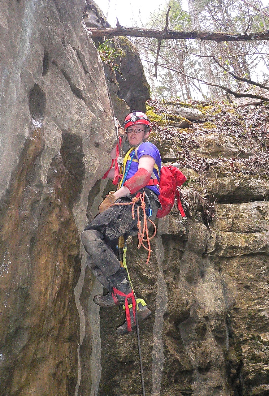 Jennifer near the top of the main entrance to Cagle's Chasm.