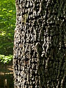 Deeply textured bark on a tree.