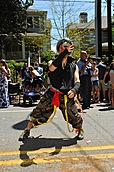 An upside-down canoe and a wheelie-popping lawn tractor.