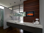 A closer look at the chandelier in the dining room as it pulsates with varying colors.